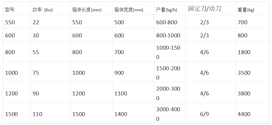 適用于各種塑料之粉碎再利用,尤其對各類硬性塑料(如料頭、鞋楦料等)效果更佳。