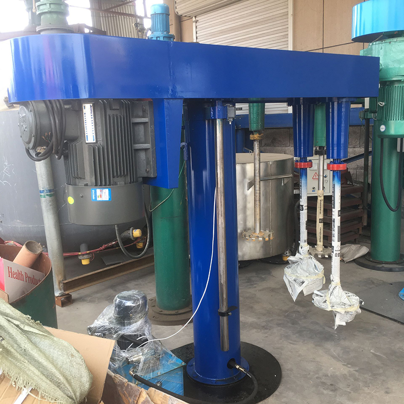 升降分散機:升降分散機主要是針對不同粘度漿狀的液體原料進行粉碎、分散、乳化、混合,通過分散盤上下劇齒的高速運轉(zhuǎn)的新型攪拌設(shè)備。是涂料等固體進行攪拌、分散、溶解的設(shè)備。升降分散機廣泛應(yīng)用涂料、油墨、顏料、膠粘劑等化工產(chǎn)品的攪拌、分散、溶解過程。升降分散機該機由機械升降、主傳動、攪拌系統(tǒng)、導(dǎo)向機構(gòu)、電控箱五部分組成,各部分結(jié)構(gòu)緊湊合理。分散盤型式:平盤鋸齒式、三義槳式、碟式。升降分散機采用電磁調(diào)速、變頻調(diào)速和三速等各種規(guī)格電機運轉(zhuǎn)穩(wěn)定有力,適合各種粘度。液壓和機械兩種升降形式,升降旋轉(zhuǎn)自如,,適應(yīng)各種位置;普通及防爆配置,安全可靠,操作維護簡單;生產(chǎn)連續(xù)性強,對物料可進行快速分散和溶解、分散效果好、生產(chǎn)效率高、運轉(zhuǎn)平穩(wěn)、安裝簡便。針對不同物料粘度及處理量有不同的功率及型號。