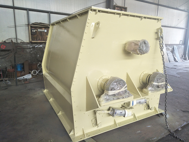 該機臥式筒體內(nèi)裝有雙軸旋轉(zhuǎn)反向的槳葉,槳成一定角度將物料沿軸向、徑向循環(huán)翻攪,使物料迅速混合均勻;為降低設(shè)備易損件的更換成本,槳葉葉片可做成兩片式,在葉片基座上墊一塊可移動小葉片,可直接更換磨損的小葉片,經(jīng)濟快捷; 出料形式一般為氣動(手動)翻板閥,圓弧閥門緊密嵌入筒內(nèi),與筒內(nèi)壁齊平,無物料堆積和混合死角現(xiàn)象;標(biāo)準(zhǔn)型有大開門小開門之分,大開門開口到筒邊,放料干凈快捷,殘留少。