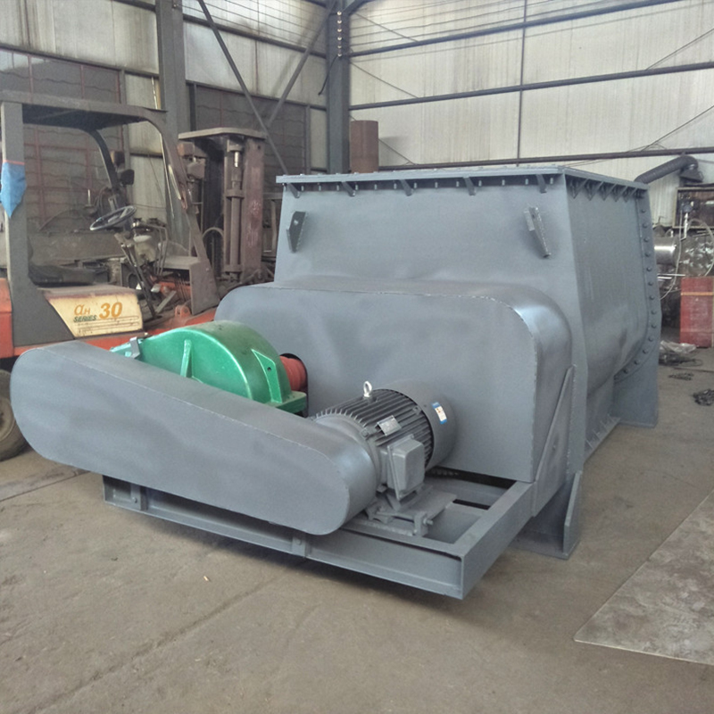 該機(jī)臥式筒體內(nèi)裝有雙軸旋轉(zhuǎn)反向的槳葉,槳成一定角度將物料沿軸向、徑向循環(huán)翻攪,使物料迅速混合均勻;為降低設(shè)備易損件的更換成本,槳葉葉片可做成兩片式,在葉片基座上墊一塊可移動(dòng)小葉片,可直接更換磨損的小葉片,經(jīng)濟(jì)快捷出料形式一般為氣動(dòng)(手動(dòng))翻板閥,圓弧閥門緊密嵌入筒內(nèi),與筒內(nèi)壁齊平,無物料堆積和混合死角現(xiàn)象;標(biāo)準(zhǔn)型有大開門小開門之分,大開門開口到筒邊,放料干凈快捷,殘留少。